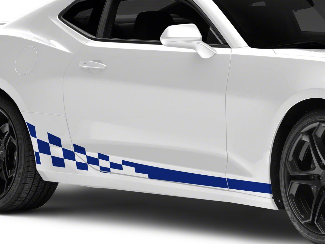 Checkered Rocker Stripe Decals. A simple and inexpensive way to personalize the exterior styling of your Chevrolet Camaro is with a set of SEC10 Checkered Rocker Stripe Decals. These Decals were specifically designed to accent the sculpted lines of the 2010-2024 Camaro.