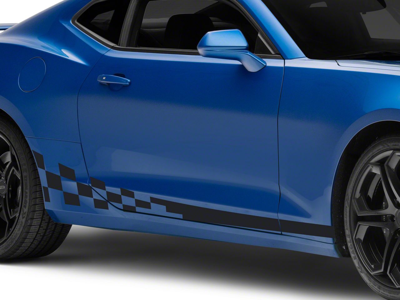 Checkered Rocker Stripe Decals. A simple and inexpensive way to personalize the exterior styling of your Chevrolet Camaro is with a set of SEC10 Checkered Rocker Stripe Decals. These Decals were specifically designed to accent the sculpted lines of the 2010-2024 Camaro.