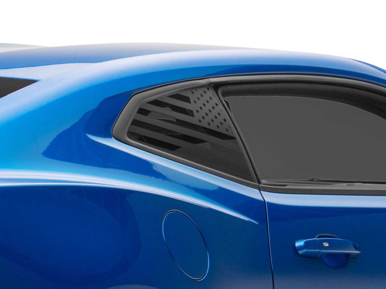Application. These SEC10 American Flag Quarter Window Decals; Matte Black are designed to fit 2016-2024 Chevrolet Camaro coupe models. Sold in pairs.