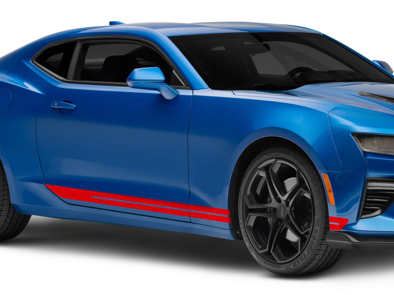 Application. These SEC10 Rocker Stripes; Red are designed to fit 2010-2024 Chevrolet Camaro models. Driver and passenger side included.