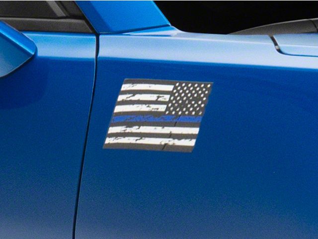 Patriotic Styling. A set of SEC10 Small Distressed Flag Decals are the perfect way to give your ride the exciting patriotic styling it's been lacking. Also notable is the blue line that serves as one of the flag's stripes to show support for the men and women of the United States law enforcement agency's.