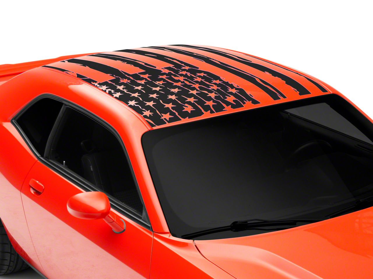 Patriotic Styling. Now you can add patriotic styling to your 2008-2023 Dodge Challenger with this Distressed Flag Roof Panel Decal. Featuring a distressed American Flag design, this Decal will proudly show off your patriotism for the USA.