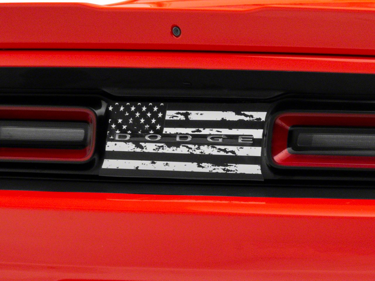 Patriotic Styling. Now you can add patriotic styling to your 2015-2023 Dodge Challenger with this SEC10 Distressed Flag Decal. Featuring a distressed American Flag design, this Decal was designed to placed between your tail lights to proudly show off your patriotism to other drivers.