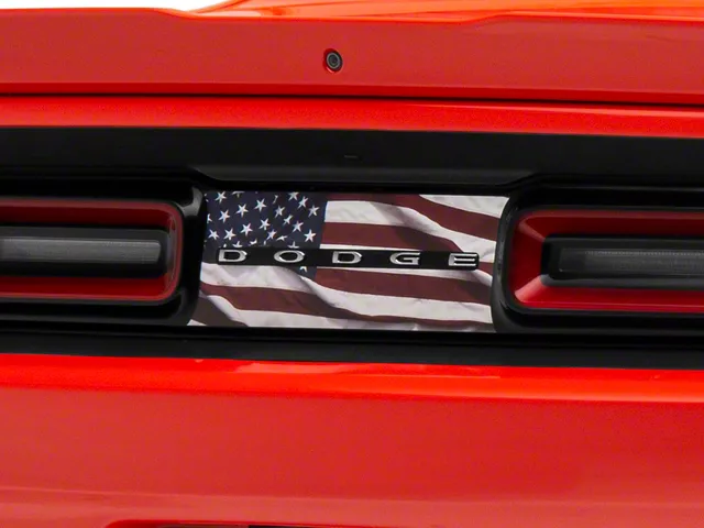 Patriotic Styling. Now you can add patriotic styling to your 2015-2023 Dodge Challenger with this SEC10 American Flag Decal. Featuring a full color American Flag design, this Decal was designed to placed between your tail lights to proudly show off your patriotism to other drivers.