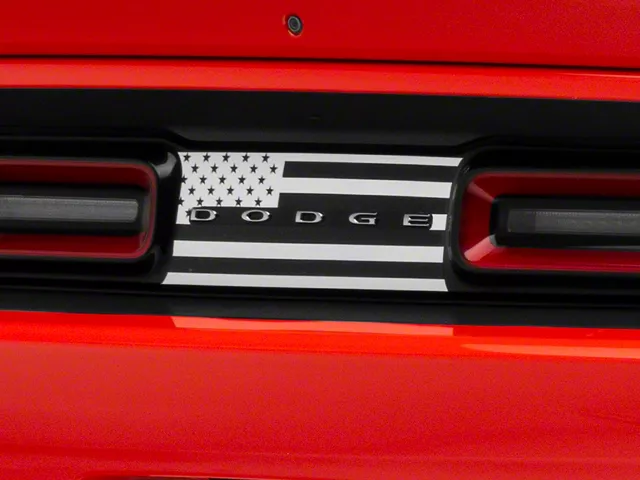 Patriotic Styling. Now you can add patriotic styling to your 2015-2023 Dodge Challenger with this SEC10 American Flag Decal. Featuring an American Flag design, this Decal was designed to placed between your tail lights to proudly show off your patriotism to other drivers.