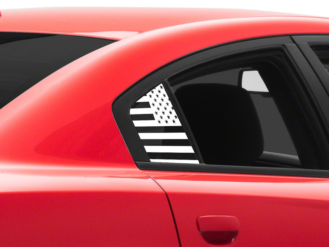 Quarter Window Flag Decals. A simple and inexpensive way to personalize the exterior styling of your Dodge Charger is with a set of SEC10 Quarter Window Flag Decals. These Decals feature an American Flag design that will proudly show off your patriotism for the United States of America.