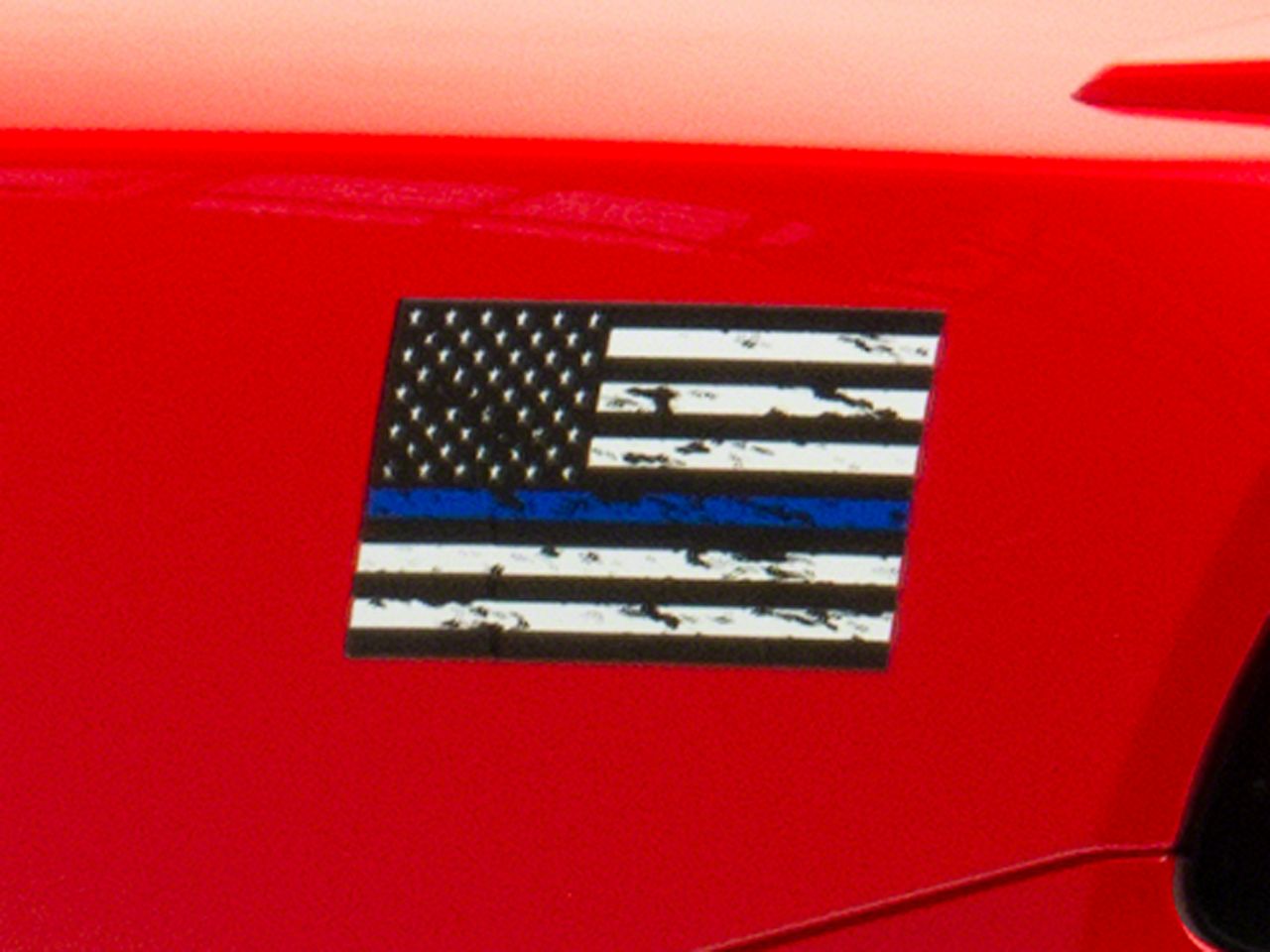 Patriotic Styling. A set of SEC10 Small Distressed Flag Decals are the perfect way to give your ride the exciting patriotic styling it's been lacking. Also notable is the blue line that serves as one of the flag's stripes to show support for the men and women of the United States law enforcement agency's.