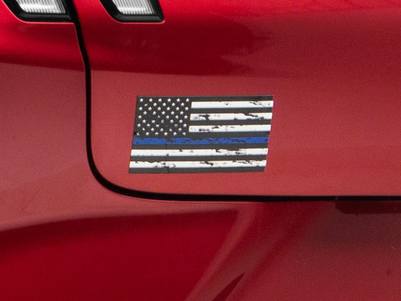 Patriotic Styling. A set of SEC10 Small Distressed Flag Decals are the perfect way to give your ride the exciting patriotic styling it's been lacking. Also notable is the blue line that serves as one of the flag's stripes to show support for the men and women of the United States law enforcement agency's.