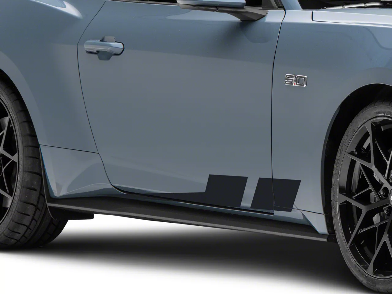 Application. These SEC10 Angled Hash Mark Rocker Stripes; Matte Black are designed to fit 1979-2026 Ford Mustang models. Driver and passenger side included.
