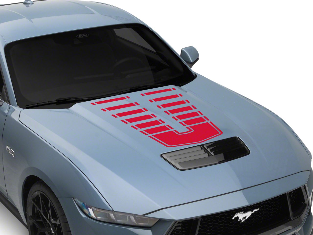 Application. This SEC10 Dashed Hood Decal; Red is designed to fit 2024-2026 Ford Mustang models. Sold individually.