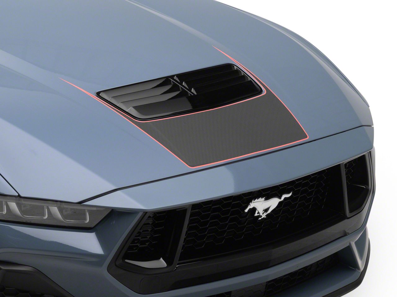 Application. This SEC10 Forward Hood Decal; Carbon Red is designed to fit 2024-2026 Ford Mustang GT and Dark Horse models. Sold individually.