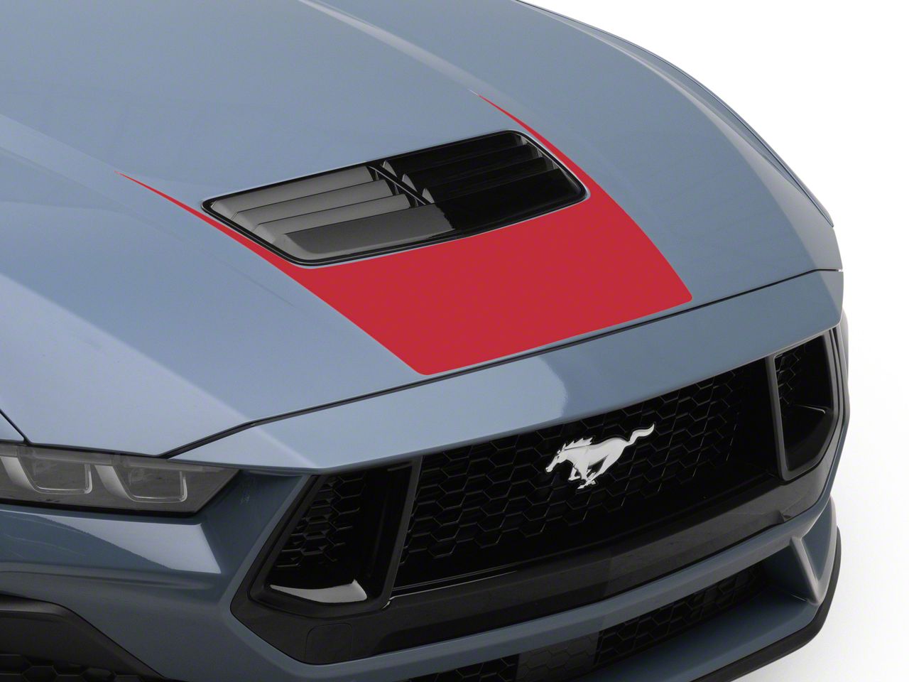 Application. This SEC10 Forward Hood Decal; Red is designed to fit 2024-2026 Ford Mustang GT and Dark Horse models. Sold individually.