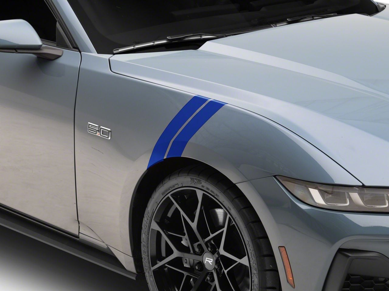 Race Car Styling. Add impressive race car inspired styling to your S650 with these Gloss Blue Twin Fender Hash Marks. SEC10 Hash Mark Stripes not only look awesome and can be applied to any 2024-2025 Mustang, but will last for years to come.