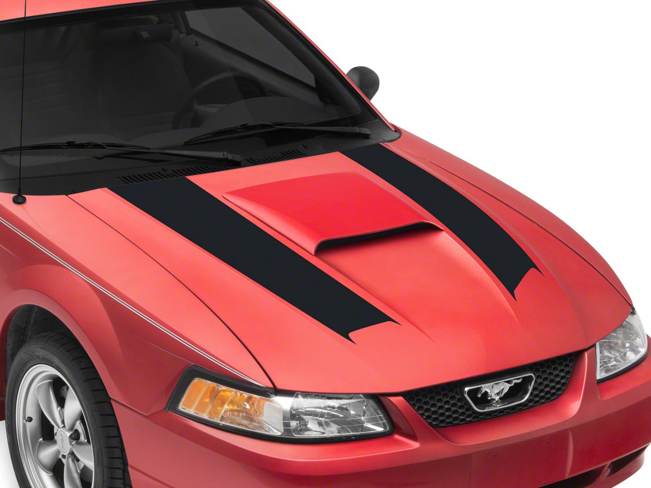 Application. These SEC10 Hood Stripes; Matte Black are designed to fit 1999-2004 Ford Mustang models. Driver and passenger side included.