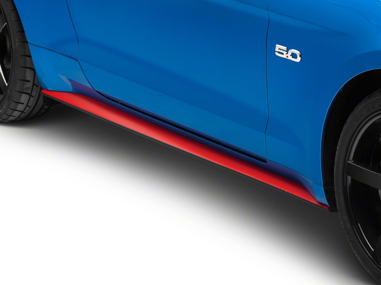 Application. These SEC10 Rocker Stripes; Red Carbon are designed to fit 2015-2023 Ford Mustang models. Driver and passenger side included.