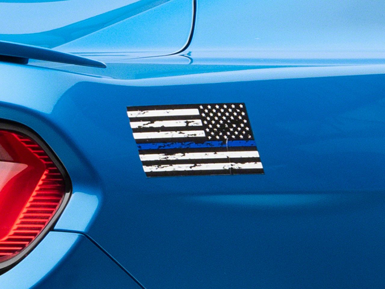 Patriotic Styling. A set of SEC10 Small Distressed Flag Decals are the perfect way to give your ride the exciting patriotic styling it's been lacking. Also notable is the blue line that serves as one of the flag's stripes to show support for the men and women of the United States law enforcement agency's.