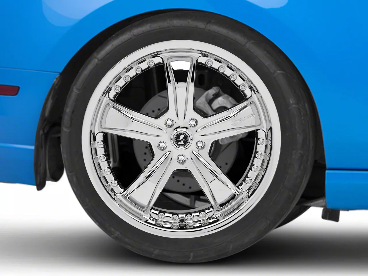 Application. This Shelby Razor Chrome Wheel; Rear Only; 20x10 with a backspace of 7.39 Inch, 187.8mm and bolt pattern of 5 x 114.3mm (5 x 4.5-Inch) ensures optimal alignment, unparalleled driving stability, and an impeccable fit with your vehicle. It is designed to fit the 2010-2014 Mustang models. Sold individually.