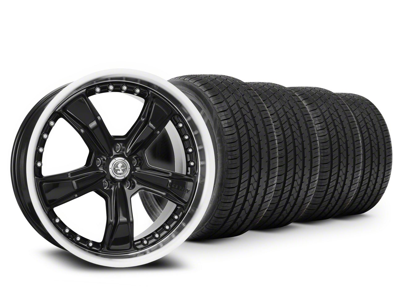 Mounted and Balanced Wheel and Tire Kit. This wheel and tire combo kit features (4) 20x9 Shelby Razor Gloss Black Wheels and (4) Lionhart LH-Five Ultra High Performance All-Season 255/35R20 tires that have been put together into an easy to buy kit that arrives to your door already mounted and balanced ready to be installed on your vehicle.
