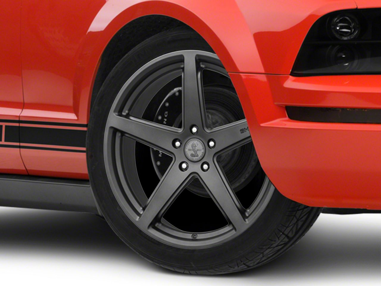 Application. This Shelby Style SB201 Charcoal Wheel; 20x9.5, with a backspacing of 6.55 Inch, 166.4mm and bolt pattern of 5 x 114.3mm (5 x 4.5-Inch), ensures precise alignment and stable driving. Designed to fit 2005-2009 Mustang models, this wheel is sold individually.
