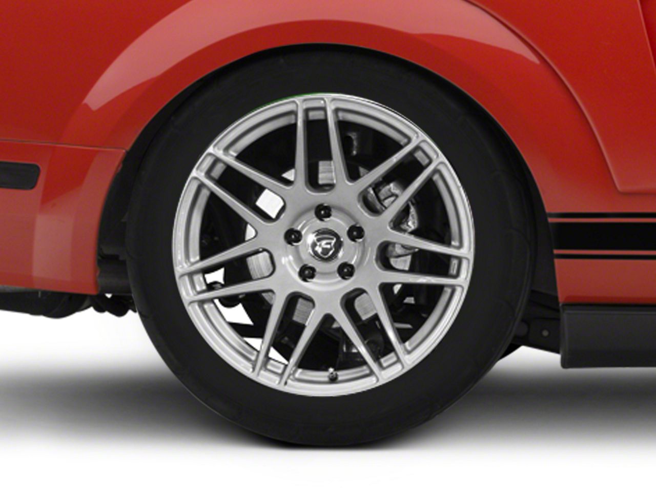 Application. This Forgestar F14 Monoblock Silver Wheel; 19x10, with a backspace of 7.154 Inch, 181.8mm and a bolt pattern of 5 x 114.3mm (5 x 4.5-Inch), is designed to enhance alignment and driving stability. It's specially designed to fit the 2005-2009 Mustang models, sold individually.