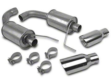 Muscular Tone. Your Mustang is beefed up under the hood, so why not let it flex those muscles for the world? The SLP Loudmouth II Axle-Back Exhaust system features a wider-than-OEM, 2.5-inch stainless steel pipe and a pair of free-flowing performance mufflers for completely unfettered exhaust flow. That translates to a pure sporty sound with less harshness.