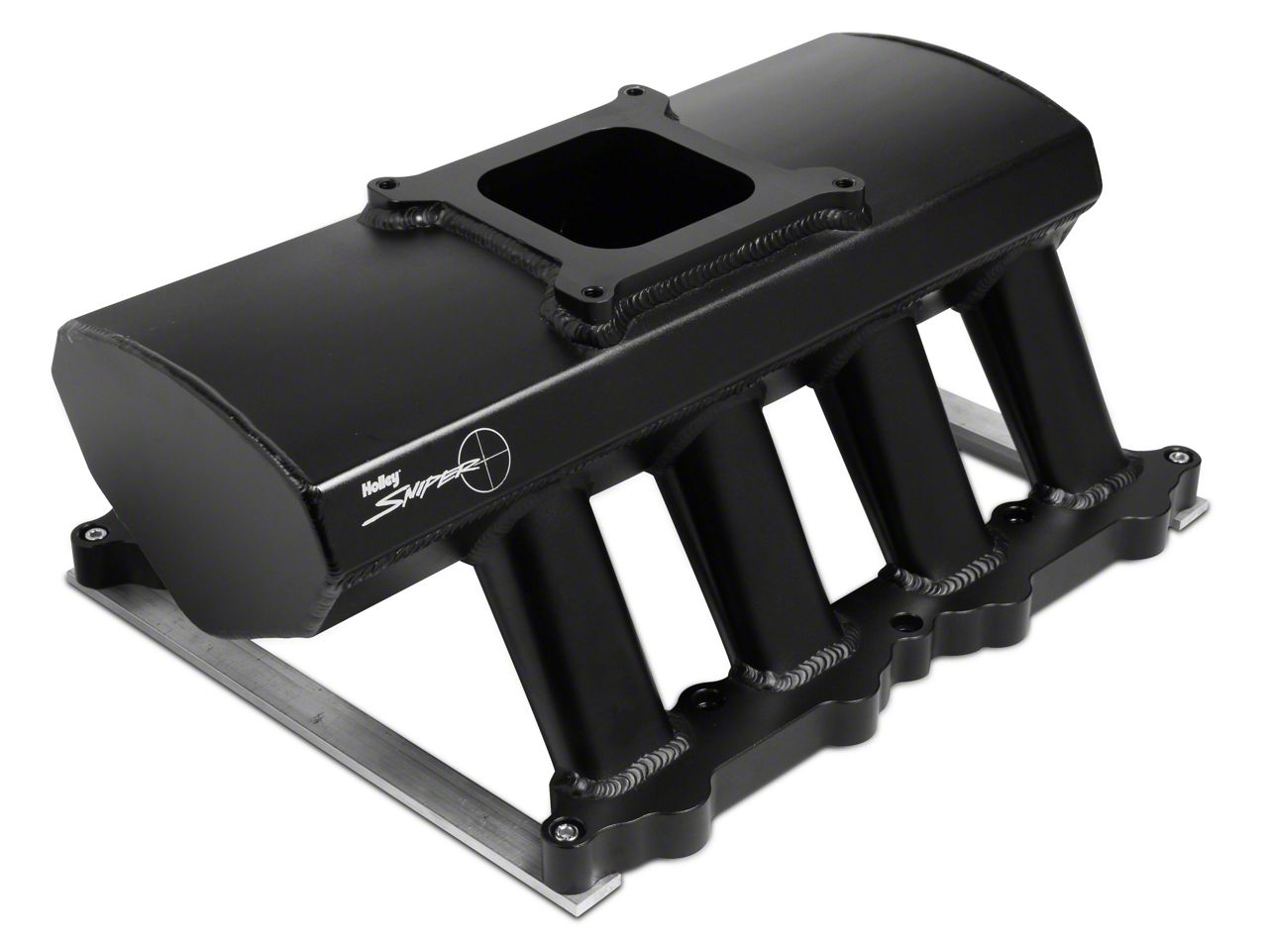 Superior Construction. Constructed utilizing superior quality 1/8" thick T6061 sheet aluminum, this Hi-Ram Sheet Aluminum Fabricated Intake Manifold is built to last and has been 100% TIG welded for accuracy and longevity. The durable bead blast black anodized finish will look like new for miles to come and really adds a touch of customization to your engine bay. Not only will the black finish look great, but it's completed with a Sniper Logo embossed directly into the top of the intake.