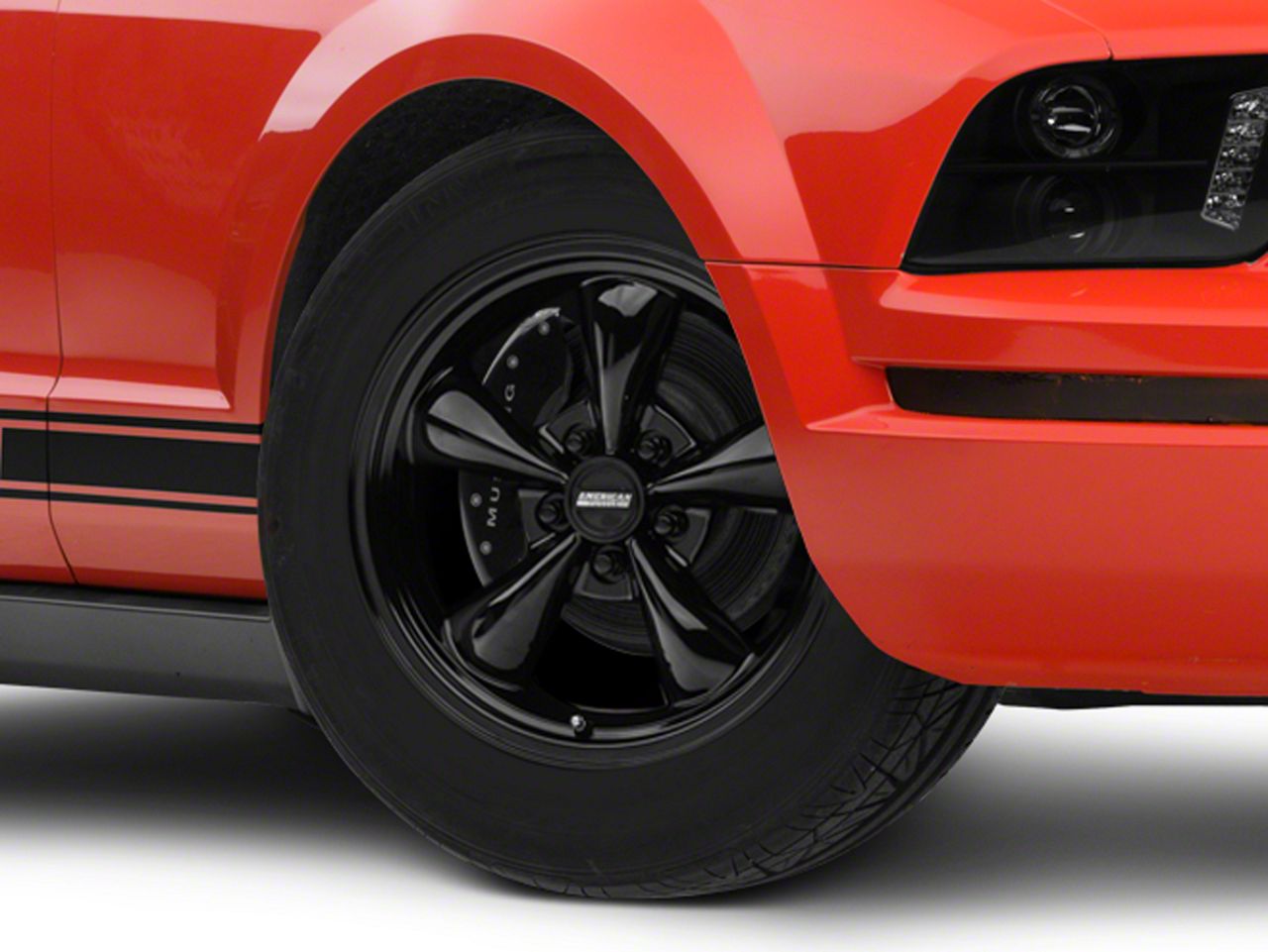 Application. This American Muscle Wheels Bullitt Solid Gloss Black Wheel; 17x8 with a backspace of 5.682 Inch, 144.4mm and bolt pattern of 5 x 114.3mm (5 x 4.5-Inch) ensures impeccable alignment and unmatched driving stability. Specifically designed for 2005-2009 Mustang GT, V6 models, each wheel is sold individually.