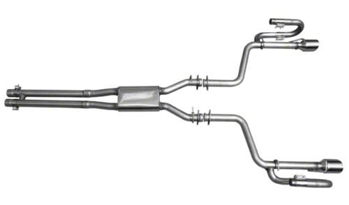 Premium Quality Build. This exhaust kit from T304 stainless steel and features T409 mandrel bent construction for the exhaust pipe. The 2-1/4-inch pipe diameter allows this system to flow freely and produces an aggressive sound without being too loud. The Mach-x design mid muffler helps cancel out any unwanted frequencies while the free-flow exhaust ensures efficient gas flow. Plus, this system comes with solo j-pipes for even more performance gains. And best of all, it has a polished finish that will look great on your car!