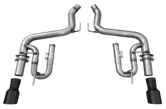 Application. This set of Solo Performance Muffler Delete Axle-Back Exhaust with Black Tips fits all 2015-2017 Ford Mustang GT Fastback models.