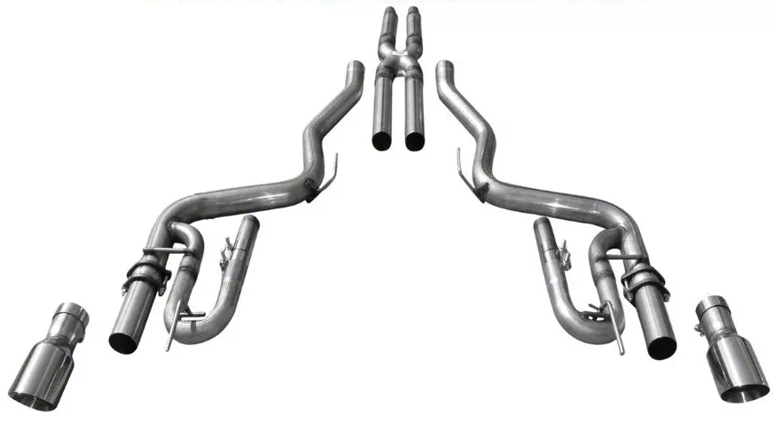 Make Your Engine Roar. This Solo Performance Street Race Cat-Back Exhaust is the perfect upgrade for your 2015-2017 Ford Mustang GT Fastback. It comes with mandrel bent, stainless steel pipes designed to give your Ford Mustang a mean '60s muscle car sound. Integrated with this kit are J-Pipes and a middle X-Pipe to help eliminate annoying drone frequencies and equalize cylinder pressure.