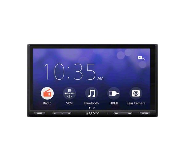 Modern Entertainment Upgrade. Upgrade your car's entertainment system with the Sony XAVAX5600 6.95-Inch CarPlay/Android Auto Media Receiver and enjoy a seamless and enjoyable driving experience. This digital media receiver has a capacitive touchscreen at 6.95 inches that provides a large and clear display. It has anti-glare technology for optimal visibility in all lighting conditions. The slim double-din display offers a sleek and modern design.