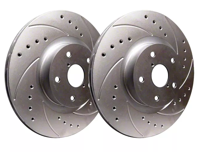 Construction and Appearance. Made from high-quality cast iron, these rotors are built for durability and long-lasting performance. The cross-drilled and slotted design enhances airflow and cooling, while the Silver ZRC coating provides exceptional corrosion resistance, ensuring they maintain their appearance and effectiveness over time.