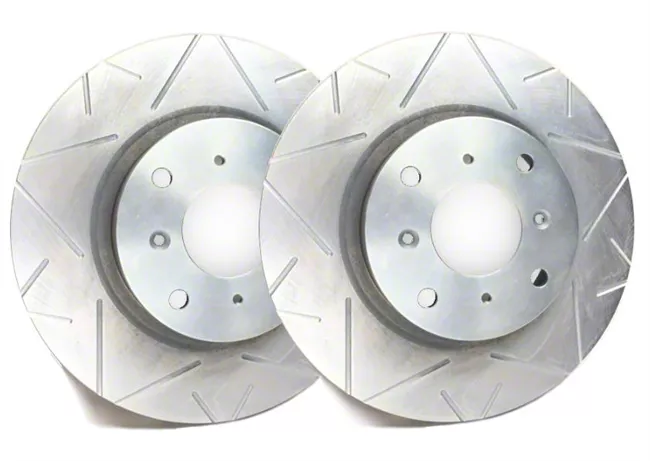 SP Performance Peak Series Slotted Rotors with Silver ZRC Coating; Rear Pair (06-17 5.7L HEMI, 3.5L RWD & 3.6L RWD Charger w/ 13.70-Inch Vented Rear Rotors; 15-23 Charger Pursuit)Find parts that fit my vehicle