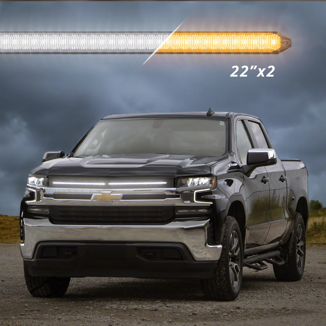 Modern and Versatile LED Running Light. The Sparksmith Universal GrilleBar 2.0 offers a unique LED running light with an animated startup sequence, adding a contemporary look to any vehicle. Its sequential switchback feature smoothly transitions between white for running lights and amber for turn signals, providing enhanced visibility and style.