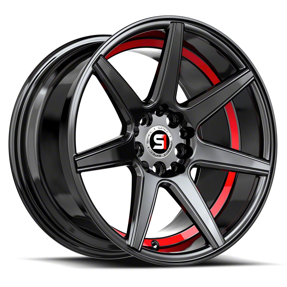 This 18x8 Spec-1 SP-73 Gloss Black and Red Undercut 5-Lug Wheel; 18x8; 38mm Offset is completed in a high-quality gloss black finish with red accents to make your wheel the envy of everyone. For added looks and durability, the wheels has a durable clear coat that withstand the rigors of daily driving.