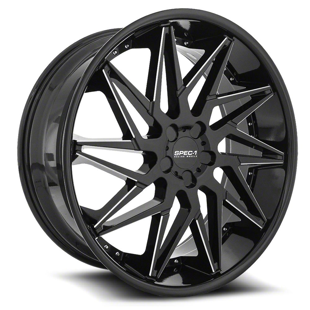 This 24x9 Spec-1 SPL-003 Gloss Black and Milled 5-Lug Wheel; 24x9; 35mm Offset is completed in a high-quality gloss black finish with steel milled accents that will make everyone take notice. For added looks and strength, the wheel features a durable clear coat that withstands the rigors of daily driving.