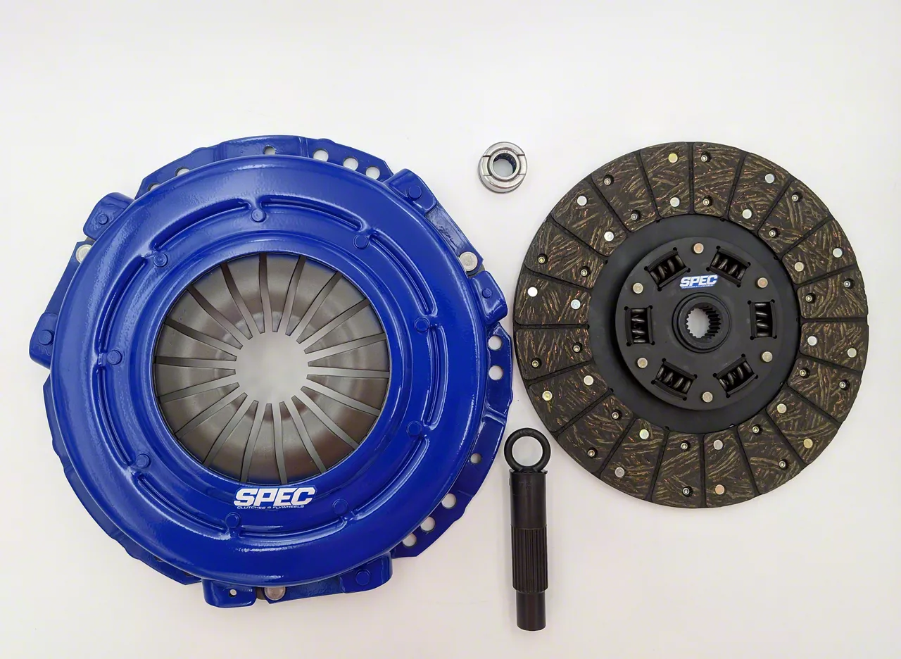 Increased Performance. For increased gains in horsepower and torque for your Mustang, the Spec Stage 1 Clutch is the answer after an engine upgrade. It features an ultra-tough carbon, kevlar-based construction and bonded steel backing for exceptional performance under high temperatures.