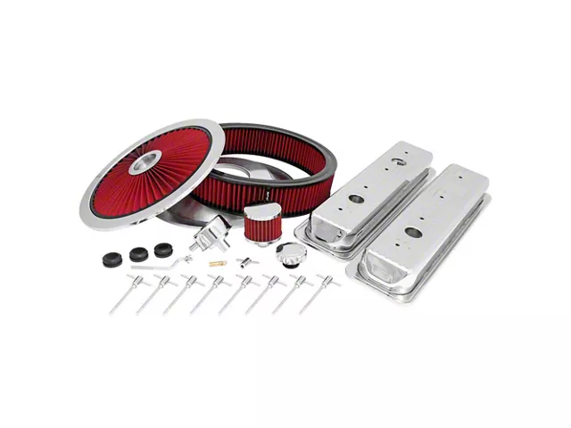 Complete Engine Bay Upgrade. The Spectre Small Block Chevy Deluxe Engine Dressup Kit is designed to transform the appearance of your engine bay with high-quality, performance-inspired components. This kit delivers a cohesive and clean look while offering reliable, long-lasting performance under the hood. Furthermore, it's ideal for builders and enthusiasts looking to restore or customize their Small Block Chevy with ease.