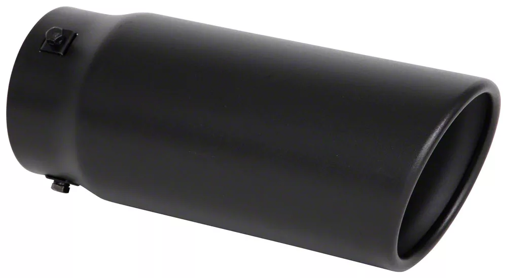 Spectre bolt-on universal exhaust tips are a great cosmetic add on for your exhaust system. Our universal stainless steel exhaust tips feature a black textured powdercoat finish for long lasting looks. The interior is resonated to further enhance the exhaust note. This exhaust tip is designed to fit 2.75 inch to 3.75 inch exhaust tubing and is held in place by the 3 mounting screws or can be tack welded. This exhaust tip also features an aggressive slant cut design with a 4.5 inch outside diameter body.