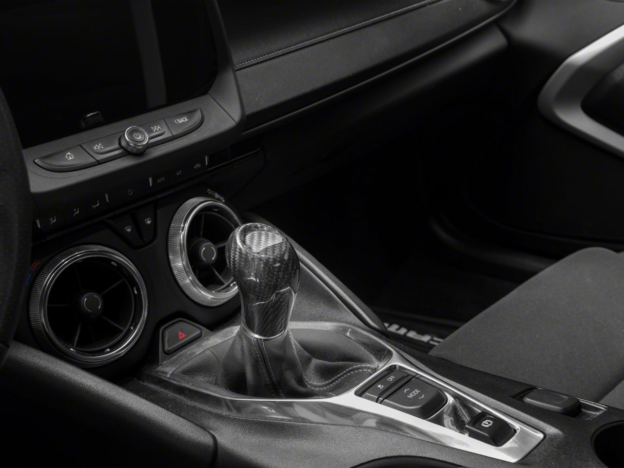 Bold, Modern Styling. A simple and effective way to add bold, modern styling to the interior of your 2016-2024 Chevrolet Camaro is with a SpeedForm Gloss Black Carbon Fiber Style Automatic Shift Knob Cover. This great looking, Black Carbon Fiber Style Cover is an inexpensive way to upgrade the appearance of your interior and it perfectly matches SpeedForm's complete line of other gloss black carbon fiber style interior styling parts.