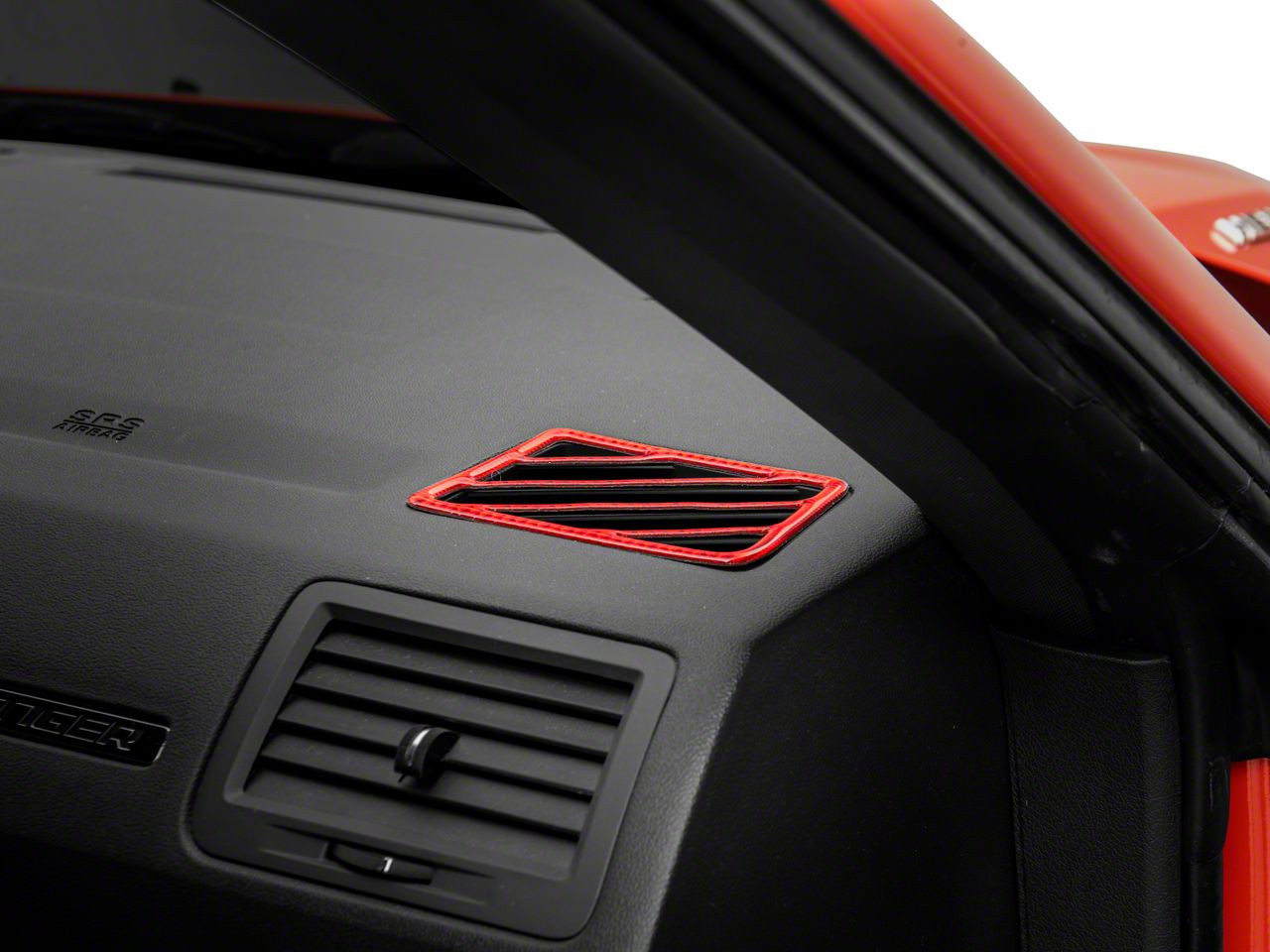 Bold, Modern Styling. A simple and effective way to add some bold, modern styling to the interior of your 2008-2014 Dodge Challenger is with SpeedForm's Carbon Fiber Air Vent Trim. This great looking, red Carbon Fiber Accent Trim is an inexpensive way to upgrade the appearance of your interior and it perfectly matches SpeedForm's complete line of other red carbon fiber interior styling parts.