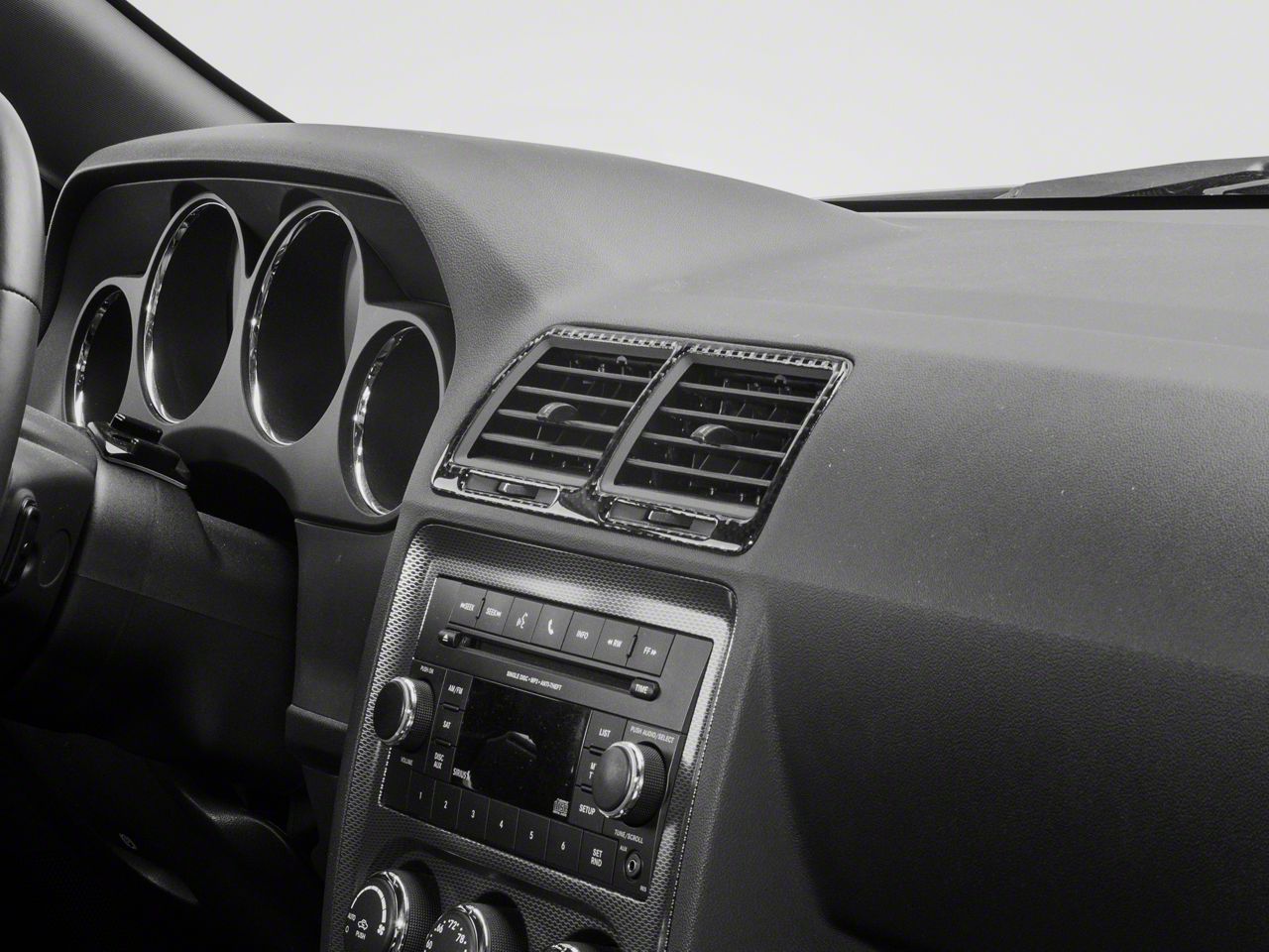 Bold, Modern Styling. A simple and effective way to add some bold, modern styling to the interior of your 2008-2014 Dodge Challenger is with SpeedForm's Carbon Fiber Center Vent Outlet Trim. This great looking, black Carbon Fiber Accent Trim is an inexpensive way to upgrade the appearance of your interior and it perfectly matches SpeedForm's complete line of other black carbon fiber interior styling parts.
