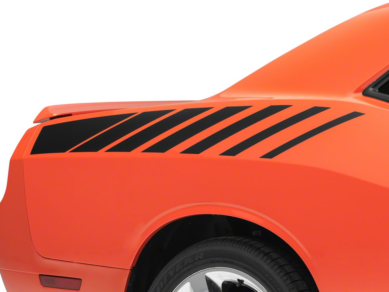 Sporty Styling. A simple and effective way to add sporty styling to your 2008-2023 Dodge Challenger is with a pair of Matte Black Dashed Quarter Panel Graphics. These SpeedForm Quarter Panel Stripes will give your Challenger a bolder appearance that looks great out on the street or at the track.