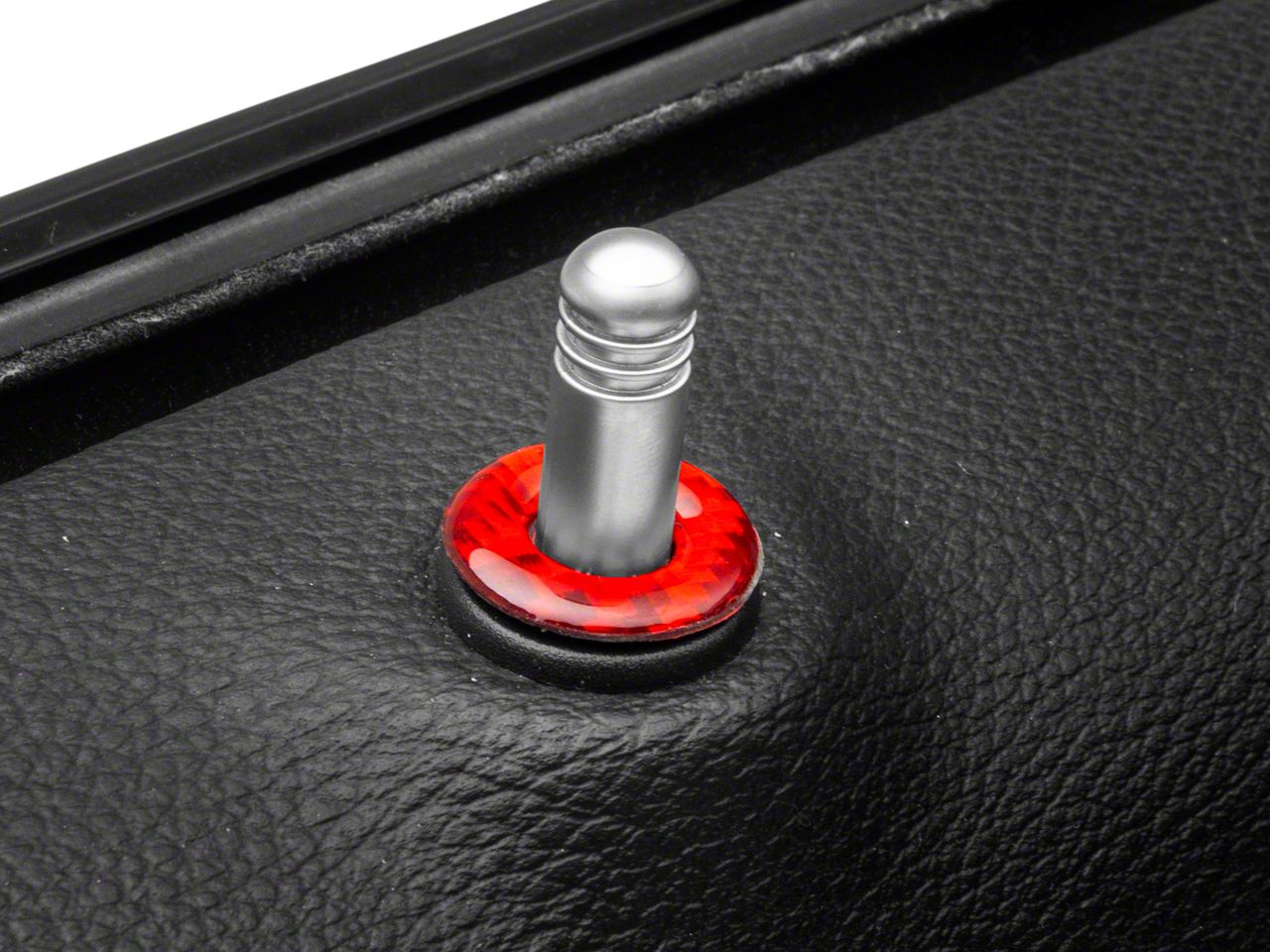 Bold, Modern Styling. A simple and effective way to add some bold, modern styling to the interior of your 2015-2023 Dodge Challenger is with SpeedForm's Carbon Fiber Door Lock Trim. This great looking, red Carbon Fiber Accent Trim is an inexpensive way to upgrade the appearance of your interior and it perfectly matches SpeedForm's complete line of other red carbon fiber interior styling parts.