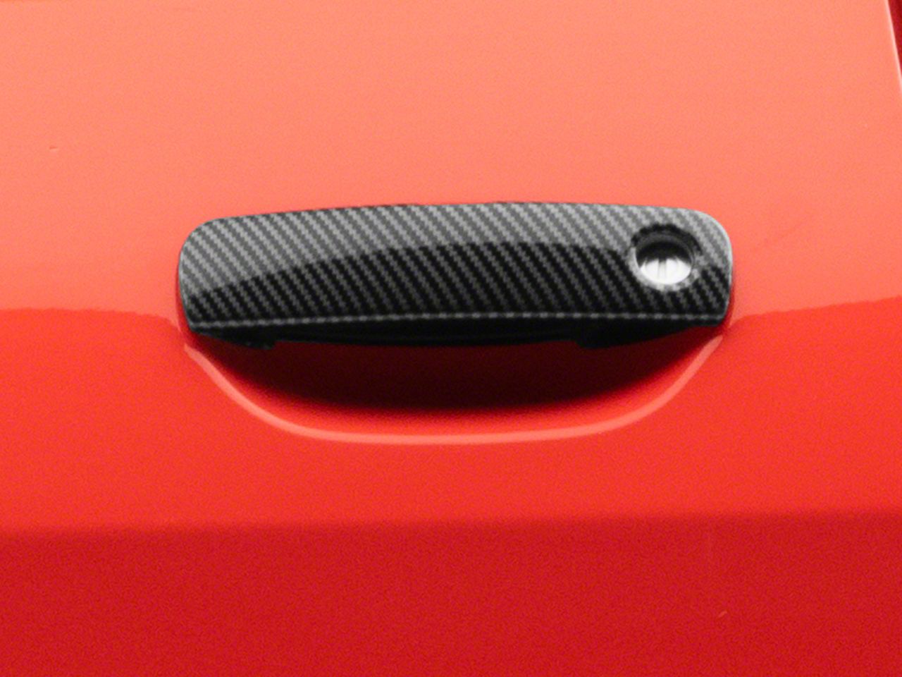 Bold, Modern Styling. A simple and effective way to add bold, modern styling to the exterior of your 2015-2023 Dodge Challenger is with a set of SpeedForm's Black Carbon Fiber Style Outer Door Handle Covers. These great looking, black Carbon Fiber Style Trim Accents are an inexpensive way to upgrade the appearance of your exterior and they perfectly match SpeedForm's complete line of other black carbon fiber exterior styling parts.