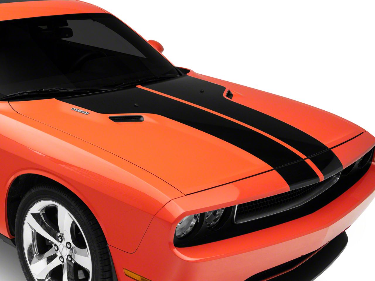 Rally Styling. A simple and effective way to add sporty styling to your 2008-2014 Dodge Challenger is with a gloss black Rally Style Hood Stripe Kit. This SpeedForm Hood Stripe Kit will give your Challenger a bolder appearance that looks great out on the street or at the track.