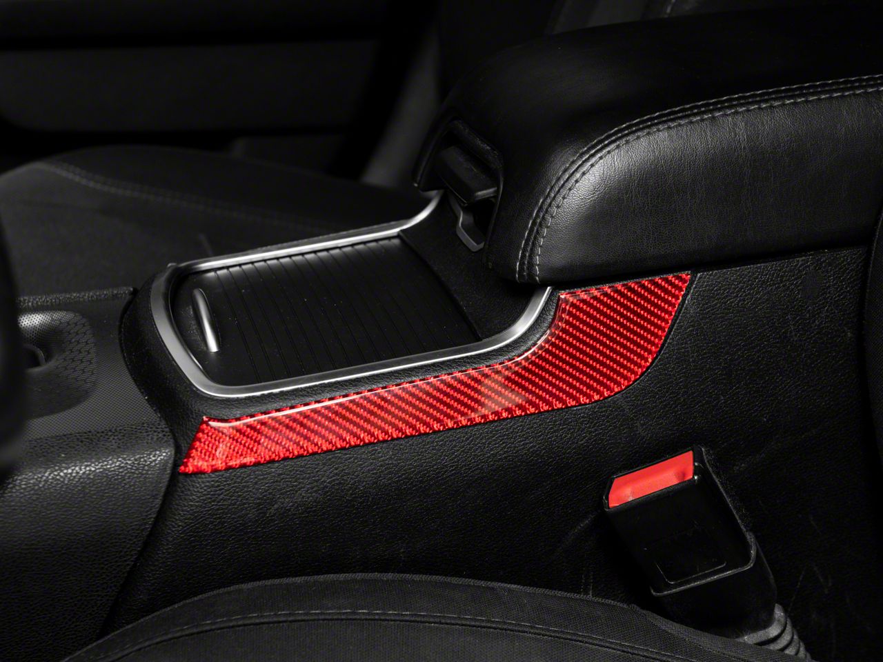 Bold, Modern Styling. A simple and effective way to add some bold, modern styling to the interior of your 2015-2023 Dodge Charger is with SpeedForm's Carbon Fiber Center Console Armrest Trim. This great looking, red Carbon Fiber Accent Trim is an inexpensive way to upgrade the appearance of your interior and it perfectly matches SpeedForm's complete line of other red carbon fiber interior styling parts.