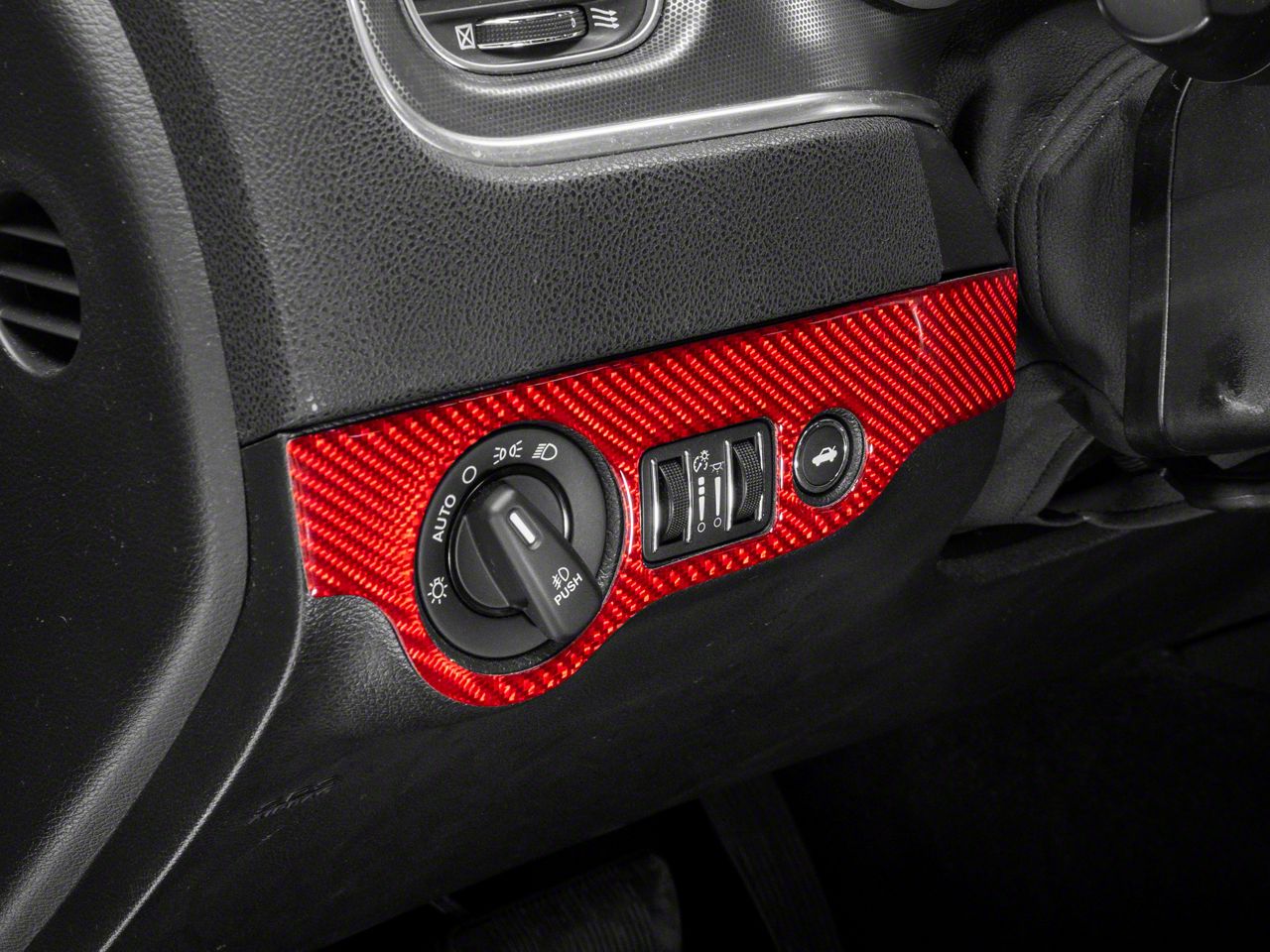 Bold, Modern Styling. A simple and effective way to add some bold, modern styling to the interior of your 2011-2023 Dodge Charger is with SpeedForm's Carbon Fiber Headlight Switch Panel Trim. This great looking, red Carbon Fiber Accent Trim is an inexpensive way to upgrade the appearance of your interior and it perfectly matches SpeedForm's complete line of other red carbon fiber interior styling parts.