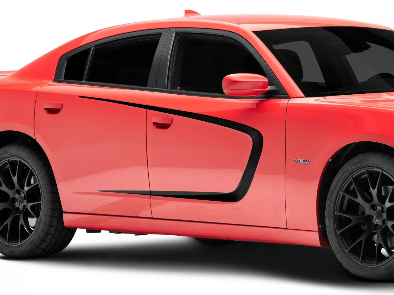 Impressive Custom Styling. Accentuate the clean sculpted body lines of your Dodge Charger with a set of SEC10 Side Scallop Accent Stripe Graphics. These Side Scallop Accent Stripes will give your Charger an impressive custom show car appearance that looks great on the street or at the track.