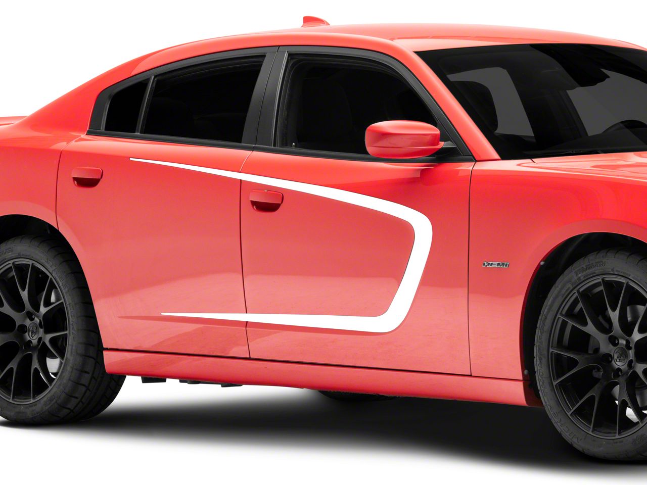 Impressive Custom Styling. Accentuate the clean sculpted body lines of your Dodge Charger with a set of SEC10 Side Scallop Accent Stripe Graphics. These Side Scallop Accent Stripes will give your Charger an impressive custom show car appearance that looks great on the street or at the track.